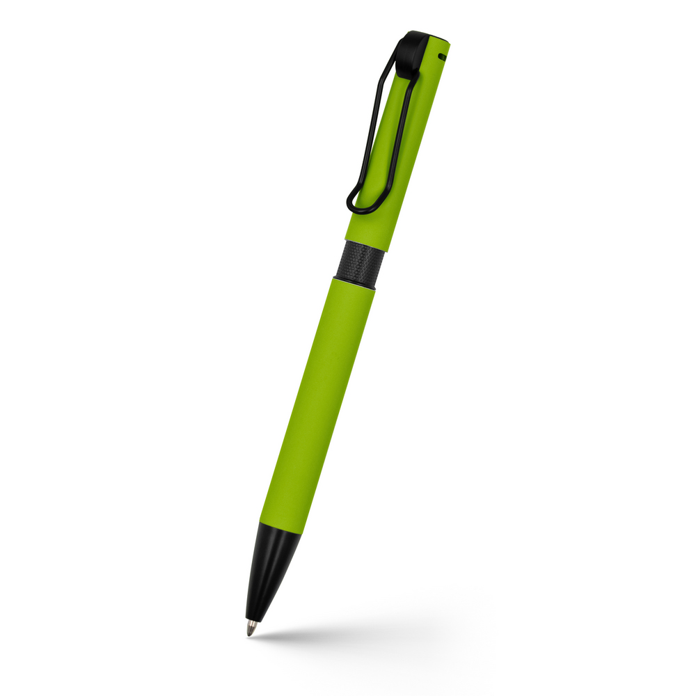 Praktischer Kugelschreiber „Voltra“ mit einem farbigen, rutschfesten Gummischaft (Softtouch-Oberfläche) für optimalen Schreibkomfort. Schwarze Zierteile verleihen ihm eine elegante Optik. Ausgestattet mit einem robusten Kordelclip, ideal für unterwegs oder zum Befestigen an Notizbüchern und Taschen. Ein zuverlässiger Begleiter für den Alltag!